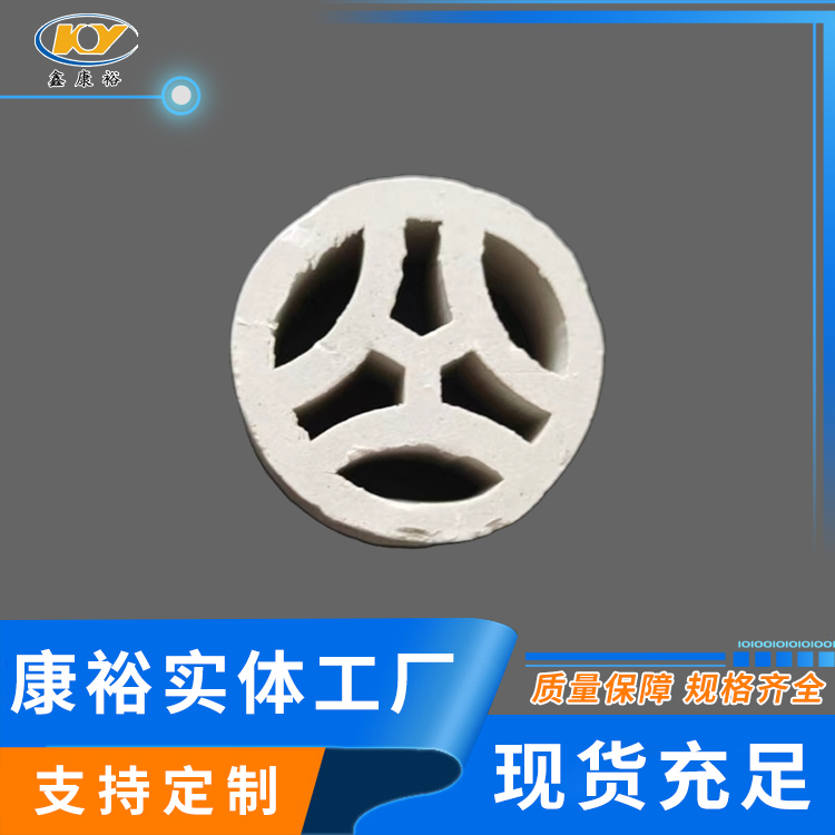 陶瓷三丫環(huán)是一種經(jīng)外觀獨(dú)特設(shè)計(jì)加工成的一種新型高效散堆填料,產(chǎn)品高徑比約為2:1,內(nèi)部設(shè)有一個(gè)或三個(gè)“Y"型隔板,這樣增大比表面積,提高汽液分散性能,使汽液接觸更充分。陶瓷三丫環(huán)主要以萍鄉(xiāng)本地產(chǎn)優(yōu)質(zhì)高嶺土與石英、長(zhǎng)石等為原料,經(jīng)配料、球磨、真空練泥、模具設(shè)計(jì)、擠壓成型、干燥、燒結(jié)等加工而成的一種新型優(yōu)質(zhì)散堆陶瓷填料。